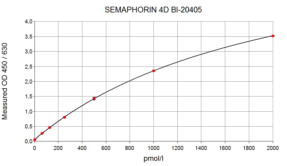 The Semaphorin 4D (SEMA4D) ELISA Kit is a 4.5-hour, 96-well sandwich assay designed for the quantitative measurement of soluble SEMA4D in plasma samples (EDTA, citrate, or heparin) and cell culture supernatants. It uses human plasma-based standards to ensure biologically relevant data accuracy. The kit employs highly purified, epitope-mapped antibodies that specifically bind to amino acid regions AA30–AA34 and AA238–AA214 of soluble SEMA4D, providing precise and consistent detection.